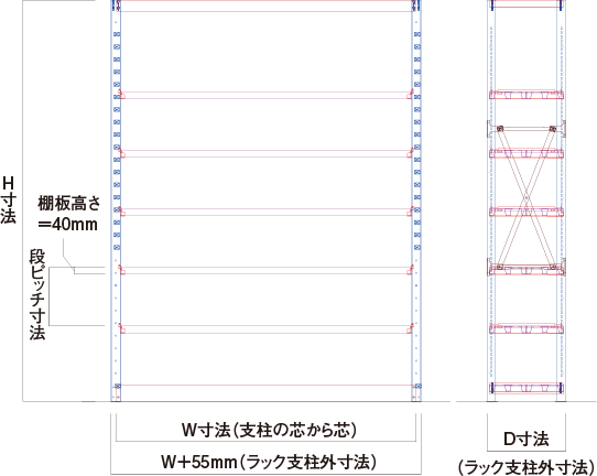 積載荷重 1段あたり300kgタイプ・500kgタイプ